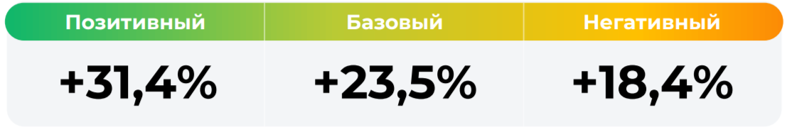 *Сценарные прогнозы (далее - Сценарии) рассчитаны на основании портфеля активов, составляющих имущество фонда в соответствии с Методикой расчета сценарных прогнозов открытых и биржевых паевых инвестиционных фондов под управлением УК "Альфа-Капитал", размещенной на сайте управляющей компании по адресу https://www.alfacapital.ru/disclosure/clients_info. Сценарии отражают аналитическую оценку потенциальной динамики совокупного портфеля активов за вычетом лимитированных в соответствии с правилами доверительного управления фондом размеров расходов и вознаграждений, подлежащих оплате за счет имущества фонда, и не являются гарантией или обещанием достижения соответствующих результатов в будущем. Инвестирование в финансовые инструменты сопряжено с рисками, в том числе с риском частичной потери инвестированных средств в связи с возможным неблагоприятным влиянием разного рода факторов. Фактические результаты инвестирования могут отличаться от представленных в расчетах Сценариев. Расчеты Сценариев ООО УК «Альфа-Капитал» осуществляются с использованием данных Сервиса прогнозов АО Петербургская Биржа.