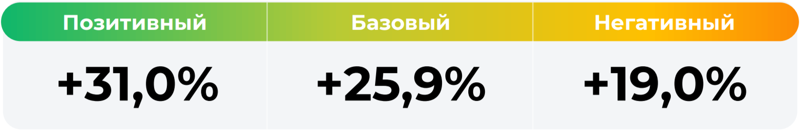 *Сценарные прогнозы (далее - Сценарии) рассчитаны на основании портфеля активов, составляющих имущество фонда в соответствии с Методикой расчета сценарных прогнозов открытых и биржевых паевых инвестиционных фондов под управлением УК "Альфа-Капитал", размещенной на сайте управляющей компании по адресу https://www.alfacapital.ru/disclosure/clients_info. Сценарии отражают аналитическую оценку потенциальной динамики совокупного портфеля активов за вычетом лимитированных в соответствии с правилами доверительного управления фондом размеров расходов и вознаграждений, подлежащих оплате за счет имущества фонда, и не являются гарантией или обещанием достижения соответствующих результатов в будущем. Инвестирование в финансовые инструменты сопряжено с рисками, в том числе с риском частичной потери инвестированных средств в связи с возможным неблагоприятным влиянием разного рода факторов. Фактические результаты инвестирования могут отличаться от представленных в расчетах Сценариев. Расчеты Сценариев ООО УК «Альфа-Капитал» осуществляются с использованием данных Сервиса прогнозов АО Петербургская Биржа.