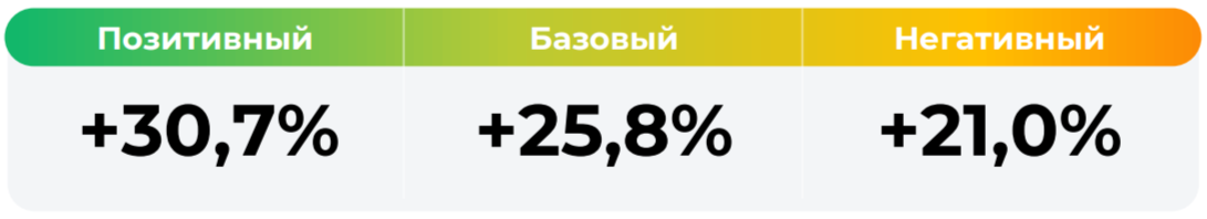 ** Сценарные прогнозы (далее - Сценарии) рассчитаны на основании портфеля активов, составляющих имущество фонда в соответствии с Методикой расчета сценарных прогнозов открытых и биржевых паевых инвестиционных фондов под управлением УК "Альфа-Капит ал", размещенной на сайте управляющей компании по адресу https://www.alfacapital.ru/disclosure/clients_info. Сценарии отражают аналитическую оценку потенциальной динамики совокупного портфеля активов за вычетом лимитированных в соответствии с правилами доверительного управления фондом размеров расходов и вознаграждений, подлежащих оплате за счет имущества фонда, и не являются гарантией или обещанием достижения соответствующих результатов в будущем. Инвестирование в финансовые инструменты сопряжено с рисками, в том числе с риском частичной потери инвестированных средств в связи с возможным неблагоприятным влиянием разного рода факторов. Фактические результаты инвестирования могут отличаться от представленных в расчетах Сценариев. Расчеты Сценариев ООО УК «Альфа-Капитал»осуществляются с использованием данных Сервиса прогнозов АО Петербургская Биржа.