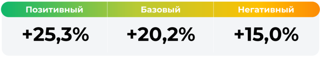 ** Сценарные прогнозы (далее - Сценарии) рассчитаны на основании портфеля активов, составляющих имущество фонда в соответствии с Методикой расчета сценарных прогнозов открытых и биржевых паевых инвестиционных фондов под управлением УК "Альфа-Капит ал", размещенной на сайте управляющей компании по адресу https://www.alfacapital.ru/disclosure/clients_info. Сценарии отражают аналитическую оценку потенциальной динамики совокупного портфеля активов за вычетом лимитированных в соответствии с правилами доверительного управления фондом размеров расходов и вознаграждений, подлежащих оплате за счет имущества фонда, и не являются гарантией или обещанием достижения соответствующих результатов в будущем. Инвестирование в финансовые инструменты сопряжено с рисками, в том числе с риском частичной потери инвестированных средств в связи с возможным неблагоприятным влиянием разного рода факторов. Фактические результаты инвестирования могут отличаться от представленных в расчетах Сценариев. Расчеты Сценариев ООО УК «Альфа-Капитал»осуществляются с использованием данных Сервиса прогнозов АО Петербургская Биржа.