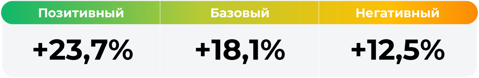 *Сценарные прогнозы (далее - Сценарии) рассчитаны на основании портфеля активов, составляющих имущество фонда в соответствии с Методикой расчета сценарных прогнозов открытых и биржевых паевых инвестиционных фондов под управлением ООО УК "Альфа Капитал", размещенной на сайте управляющей компании по адресу https://www.alfacapital.ru/disclosure/clients_info. Сценарии отражают аналитическую оценку потенциальной динамики совокупного портфеля активов за вычетом лимитированных в соответствии с правилами доверительного управления фондом размеров расходов и вознаграждений, подлежащих оплате за счет имущества фонда, и не являются гарантией или обещанием достижения соответствующих результатов в будущем. Инвестирование в финансовые инструменты сопряжено с рисками, в том числе с риском частичной потери инвестированных средств в связи с возможным неблагоприятным влиянием разного рода факторов. Фактические результаты инвестирования могут отличаться от представленных в расчетах Сценариев. Расчеты Сценариев ООО УК «Альфа-Капитал» осуществляются с использованием данных Сервиса прогнозов АО Петербургская Биржа.