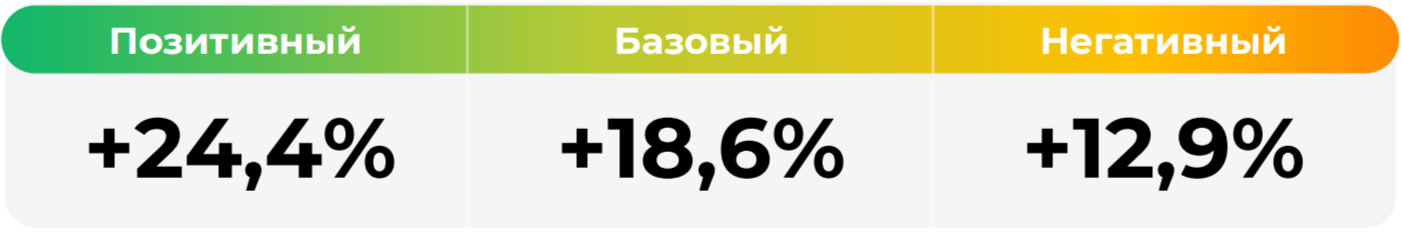 *Сценарные прогнозы (далее - Сценарии) рассчитаны на основании портфеля активов, составляющих имущество фонда в соответствии с Методикой расчета сценарных прогнозов открытых и биржевых паевых инвестиционных фондов под управлением ООО УК "Альфа Капитал", размещенной на сайте управляющей компании по адресу https://www.alfacapital.ru/disclosure/clients_info. Сценарии отражают аналитическую оценку потенциальной динамики совокупного портфеля активов за вычетом лимитированных в соответствии с правилами доверительного управления фондом размеров расходов и вознаграждений, подлежащих оплате за счет имущества фонда, и не являются гарантией или обещанием достижения соответствующих результатов в будущем. Инвестирование в финансовые инструменты сопряжено с рисками, в том числе с риском частичной потери инвестированных средств в связи с возможным неблагоприятным влиянием разного рода факторов. Фактические результаты инвестирования могут отличаться от представленных в расчетах Сценариев. Расчеты Сценариев ООО УК «Альфа-Капитал» осуществляются с использованием данных Сервиса прогнозов АО Петербургская Биржа.