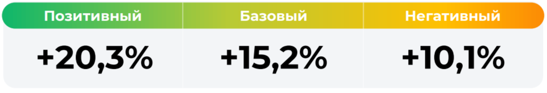 *Сценарные прогнозы (далее - Сценарии) рассчитаны на основании портфеля активов, составляющих имущество фонда в соответствии с Методикой расчета сценарных прогнозов открытых и биржевых паевых инвестиционных фондов под управлением ООО УК "Альфа Капитал", размещенной на сайте управляющей компании по адресу https://www.alfacapital.ru/disclosure/clients_info. Сценарии отражают аналитическую оценку потенциальной динамики совокупного портфеля активов за вычетом лимитированных в соответствии с правилами доверительного управления фондом размеров расходов и вознаграждений, подлежащих оплате за счет имущества фонда, и не являются гарантией или обещанием достижения соответствующих результатов в будущем. Инвестирование в финансовые инструменты сопряжено с рисками, в том числе с риском частичной потери инвестированных средств в связи с возможным неблагоприятным влиянием разного рода факторов. Фактические результаты инвестирования могут отличаться от представленных в расчетах Сценариев. Расчеты Сценариев ООО УК «Альфа-Капитал» осуществляются с использованием данных Сервиса прогнозов АО Петербургская Биржа.