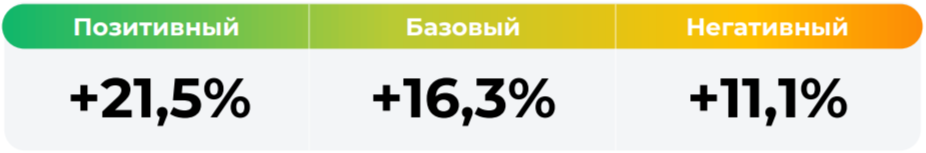 *Сценарные прогнозы (далее - Сценарии) рассчитаны на основании портфеля активов, составляющих имущество фонда в соответствии с Методикой расчета сценарных прогнозов открытых и биржевых паевых инвестиционных фондов под управлением ООО УК "Альфа Капитал", размещенной на сайте управляющей компании по адресу https://www.alfacapital.ru/disclosure/clients_info. Сценарии отражают аналитическую оценку потенциальной динамики совокупного портфеля активов за вычетом лимитированных в соответствии с правилами доверительного управления фондом размеров расходов и вознаграждений, подлежащих оплате за счет имущества фонда, и не являются гарантией или обещанием достижения соответствующих результатов в будущем. Инвестирование в финансовые инструменты сопряжено с рисками, в том числе с риском частичной потери инвестированных средств в связи с возможным неблагоприятным влиянием разного рода факторов. Фактические результаты инвестирования могут отличаться от представленных в расчетах Сценариев. Расчеты Сценариев ООО УК «Альфа-Капитал» осуществляются с использованием данных Сервиса прогнозов АО Петербургская Биржа.