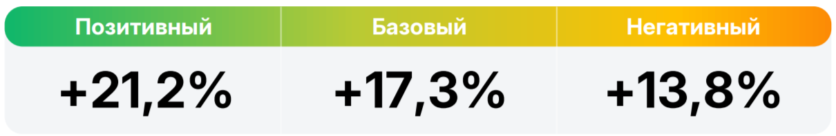 *Сценарные прогнозы (далее - Сценарии) рассчитаны на основании портфеля активов, составляющих имущество фонда в соответствии с Методикой расчета сценарных прогнозов открытых и биржевых паевых инвестиционных фондов под управлением ООО УК "Альфа Капитал", размещенной на сайте управляющей компании по адресу https://www.alfacapital.ru/disclosure/clients_info. Сценарии отражают аналитическую оценку потенциальной динамики совокупного портфеля активов за вычетом лимитированных в соответствии с правилами доверительного управления фондом размеров расходов и вознаграждений, подлежащих оплате за счет имущества фонда, и не являются гарантией или обещанием достижения соответствующих результатов в будущем. Инвестирование в финансовые инструменты сопряжено с рисками, в том числе с риском частичной потери инвестированных средств в связи с возможным неблагоприятным влиянием разного рода факторов. Фактические результаты инвестирования могут отличаться от представленных в расчетах Сценариев. Расчеты Сценариев ООО УК «Альфа-Капитал» осуществляются с использованием данных Сервиса прогнозов АО Петербургская Биржа.