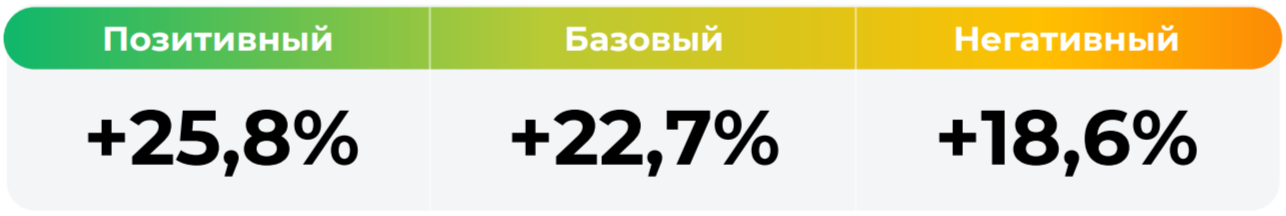 *Сценарные прогнозы (далее - Сценарии) рассчитаны на основании портфеля активов, составляющих имущество фонда в соответствии с Методикой расчета сценарных прогнозов открытых и биржевых паевых инвестиционных фондов под управлением ООО УК "Альфа Капитал", размещенной на сайте управляющей компании по адресу https://www.alfacapital.ru/disclosure/clients_info. Сценарии отражают аналитическую оценку потенциальной динамики совокупного портфеля активов за вычетом лимитированных в соответствии с правилами доверительного управления фондом размеров расходов и вознаграждений, подлежащих оплате за счет имущества фонда, и не являются гарантией или обещанием достижения соответствующих результатов в будущем. Инвестирование в финансовые инструменты сопряжено с рисками, в том числе с риском частичной потери инвестированных средств в связи с возможным неблагоприятным влиянием разного рода факторов. Фактические результаты инвестирования могут отличаться от представленных в расчетах Сценариев. Расчеты Сценариев ООО УК «Альфа-Капитал» осуществляются с использованием данных Сервиса прогнозов АО Петербургская Биржа.