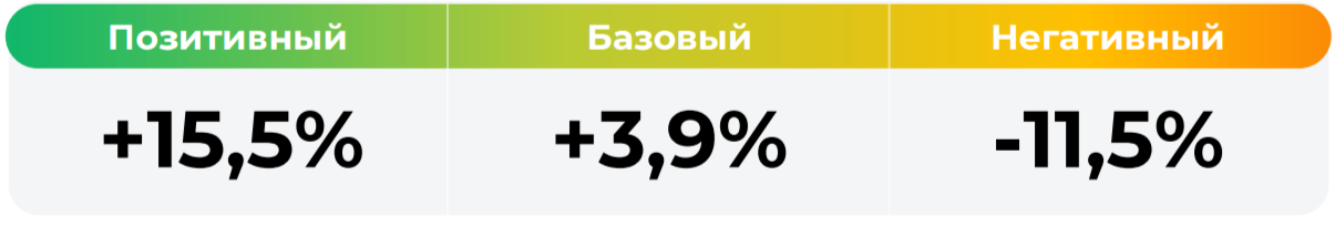 *Сценарные прогнозы (далее - Сценарии) рассчитаны на основании портфеля активов, составляющих имущество фонда в соответствии с Методикой расчета сценарных прогнозов открытых и биржевых паевых инвестиционных фондов под управлением УК "Альфа-Капитал", размещенной на сайте управляющей компании по адресу https://www.alfacapital.ru/disclosure/clients_info. Сценарии отражают аналитическую оценку потенциальной динамики совокупного портфеля активов за вычетом лимитированных в соответствии с правилами доверительного управления фондом размеров расходов и вознаграждений, подлежащих оплате за счет имущества фонда, и не являются гарантией или обещанием достижения соответствующих результатов в будущем. Инвестирование в финансовые инструменты сопряжено с рисками, в том числе с риском частичной потери инвестированных средств в связи с возможным неблагоприятным влиянием разного рода факторов. Фактические результаты инвестирования могут отличаться от представленных в расчетах Сценариев. Расчеты Сценариев ООО УК «Альфа-Капитал» осуществляются с использованием данных Сервиса прогнозов АО Петербургская Биржа.