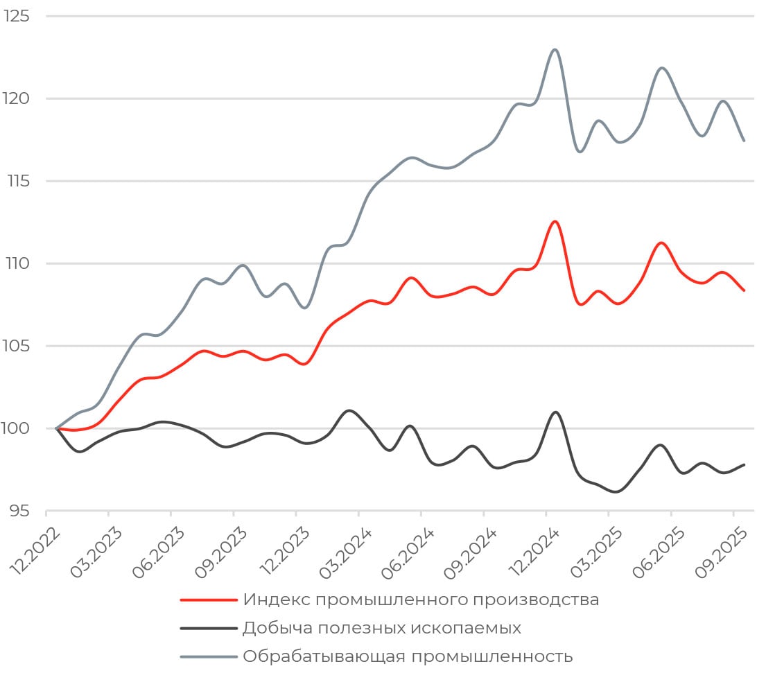 Поддержку общей динамике в промышленности оказала энергетика, которая в сентябре показала рост впервые с апреля (+1,2% г/г за сентябрь, 0,1% г/г за III кв. и −1,9% г/г за январь-сентябрь).